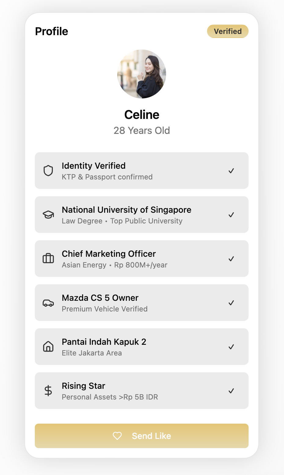 Our users are mostly upper-middle class Gen Z & Millennials (ages 25–40 years old) in Indonesia with verified backgrounds.